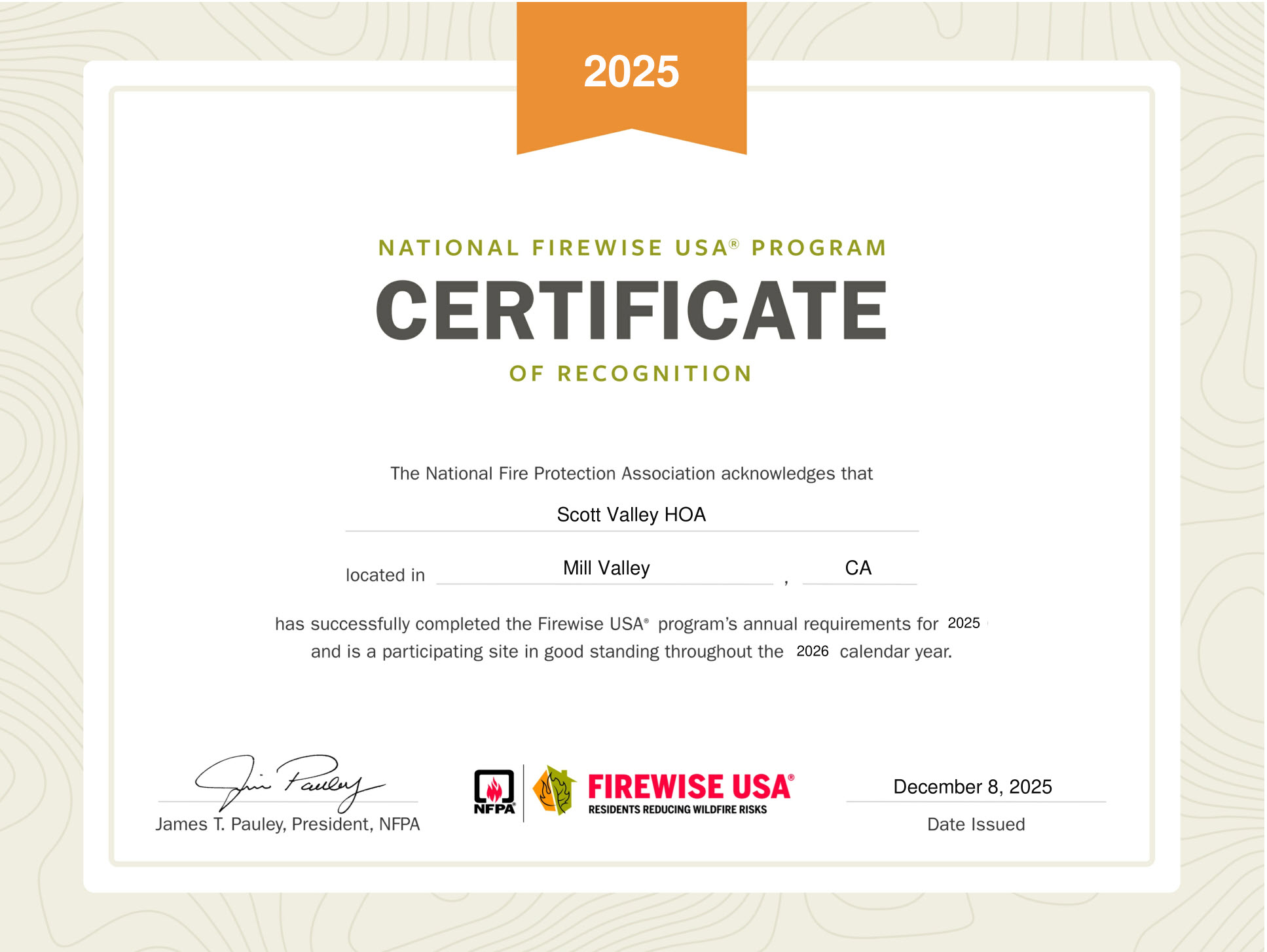 SVHOA Firewise Certificate 2025-2026